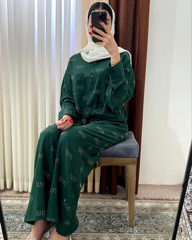 شومیزشلوارکیفیت بالا نگین پرسی که باشستشوبه هیچعنوان ریخته نمیشود ابرفت ندارد کار خیلی قشنگی هست کمیتونی توی تموم مهمونیا وبیرون بپوشیش 😍🥰