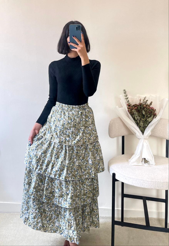 دامن طبقه ای کیفیت عالی کار بسیارقشنگ قابل شستشو هستش ابرفت نداره توی تموم مهمونیاوبیرون میتونی بپوشیش 😍🔥