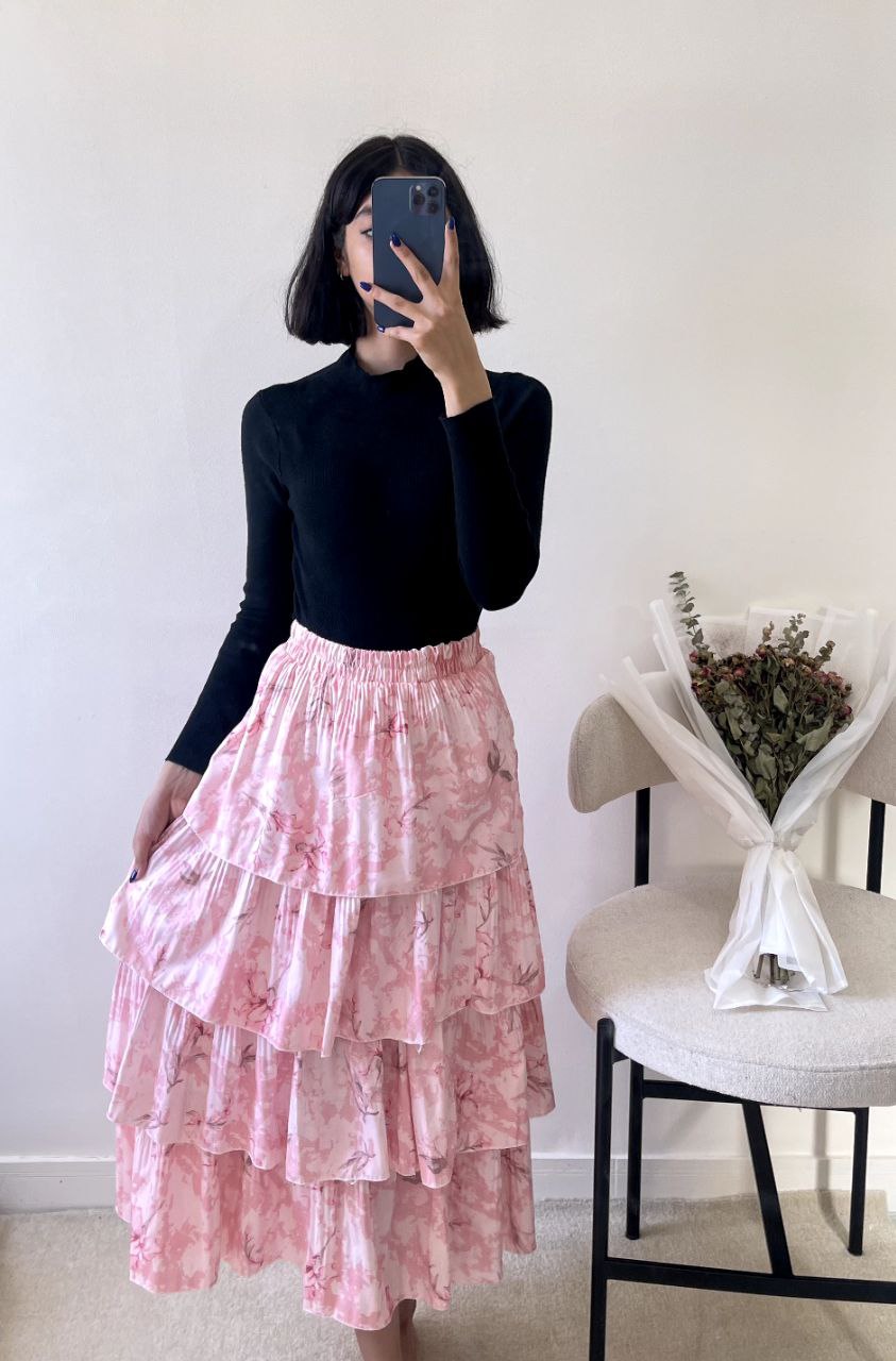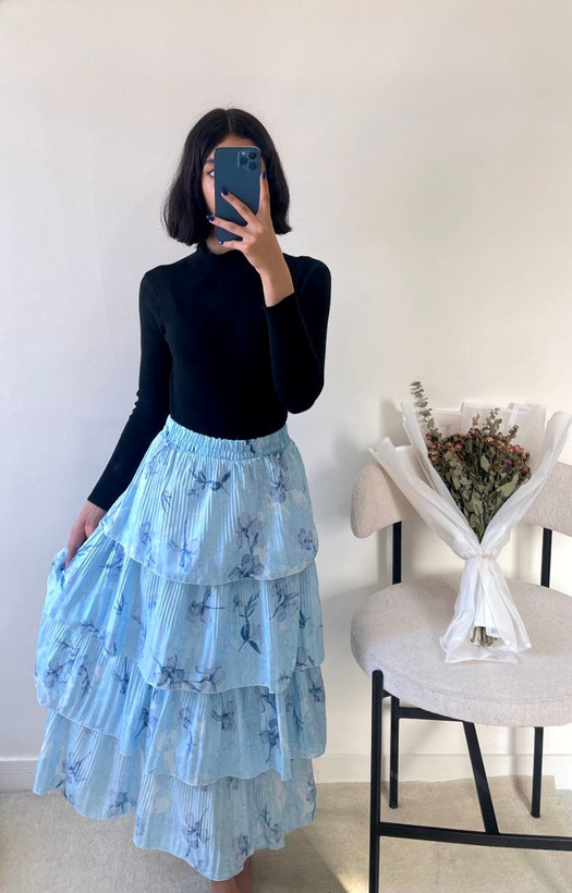 دامن طبقه ای کیفیت عالی کار بسیارقشنگ قابل شستشو هستش ابرفت نداره توی تموم مهمونیاوبیرون میتونی بپوشیش 😍🔥